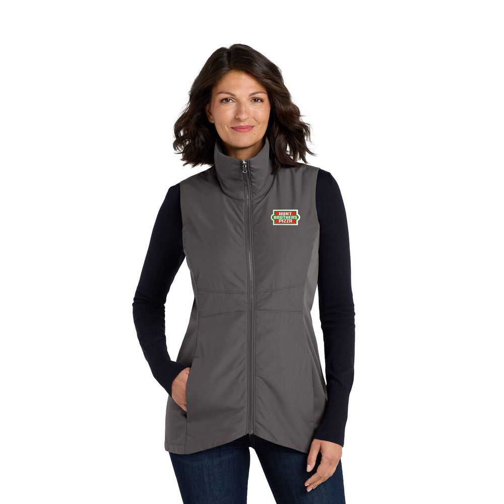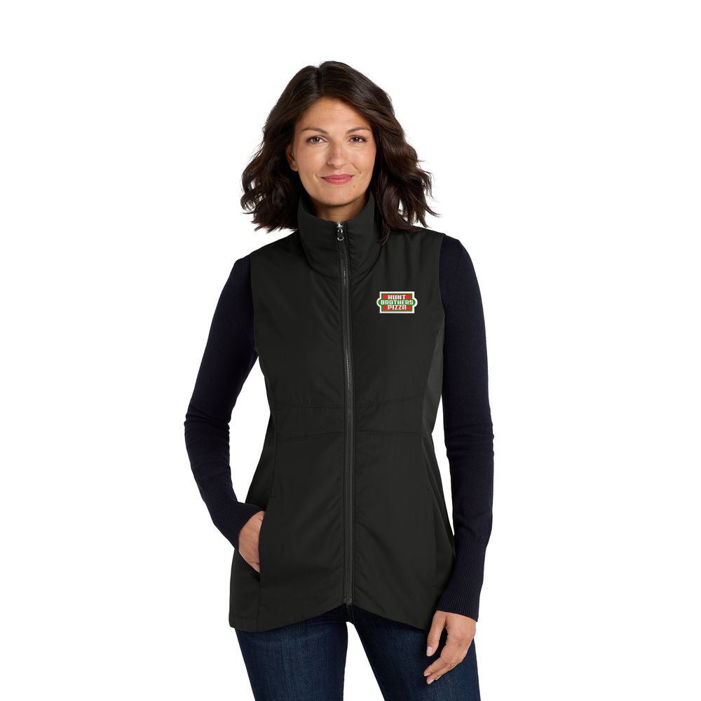 Insulation and stretch soft shell side panels make this vest a versatile, flattering and cozy cold-weather layer.